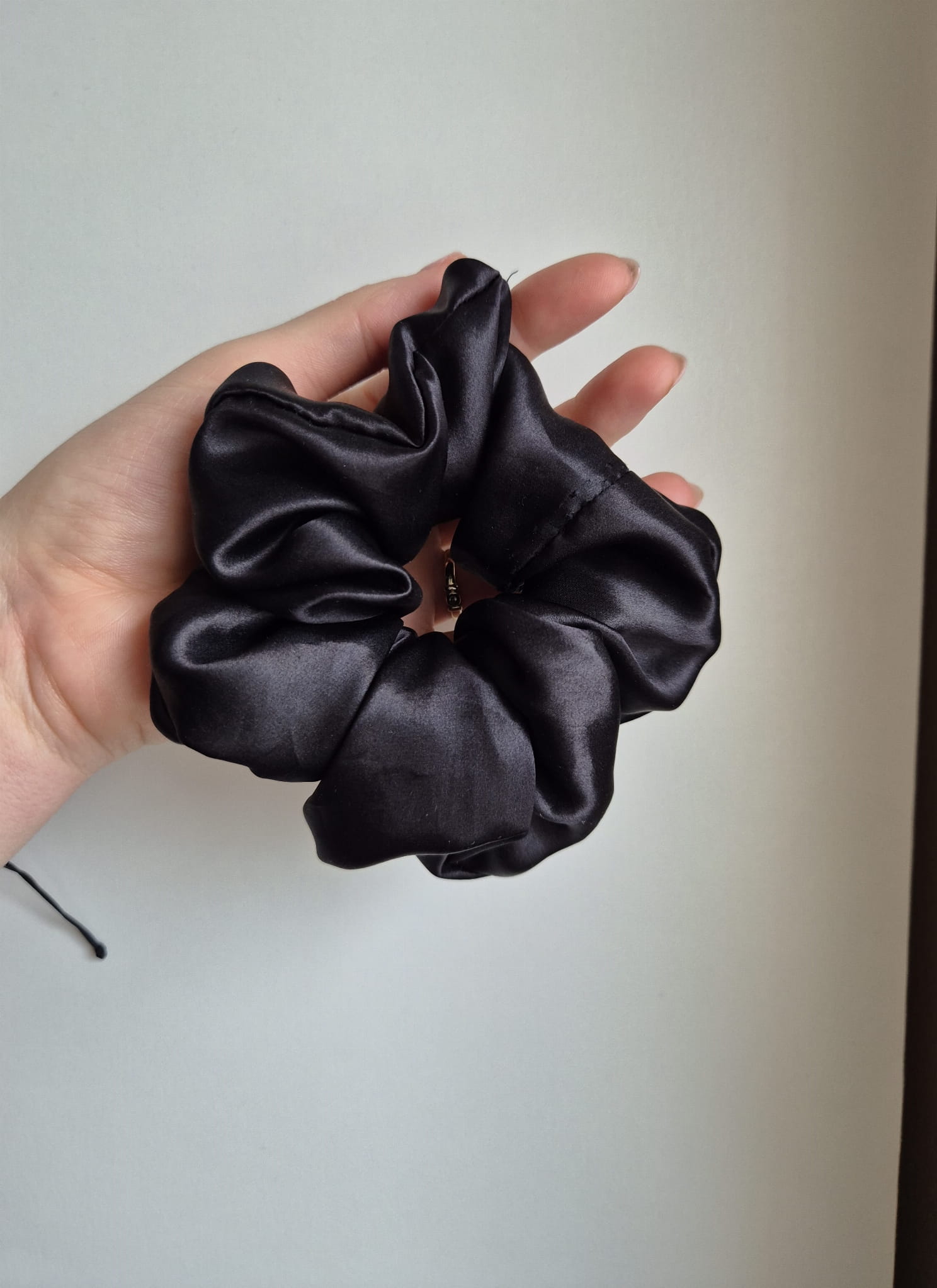 - Nasza jedwabna frotka bardzo dobrze trzyma włosy zarówno te grube jak i cieńsze dzięki szerokiej gumie wewnątrz scrunchie.